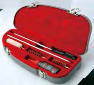 散弾銃銃身用クリーニングブラシセット。専用ケースには銃身の清掃に必要なロッド、モップ、スティールブラシ、ナイロンブラシ、オイルがセットになっている。※写真は12GA