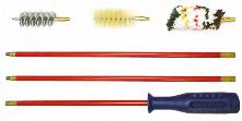 ライフル銃用のクリーニングブラシセット。ロッドとスチールスパイラル、ウール、ナイロンの3種類のブラシ、クリアケースが付属。