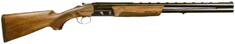 FRANCHI上下二連、軽量モデル。機関部にはレシーバーは黒色アルマイトのアルミニウム合金で、両側に飛んでいるヤマシギの白色レーザー彫刻が施されている。交換チョーク式純正ライフルドチョーク他2本付属。